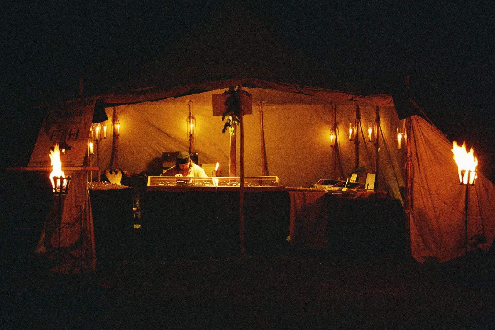 Marktstand für historisches Handwerk und mobile Werkstatt